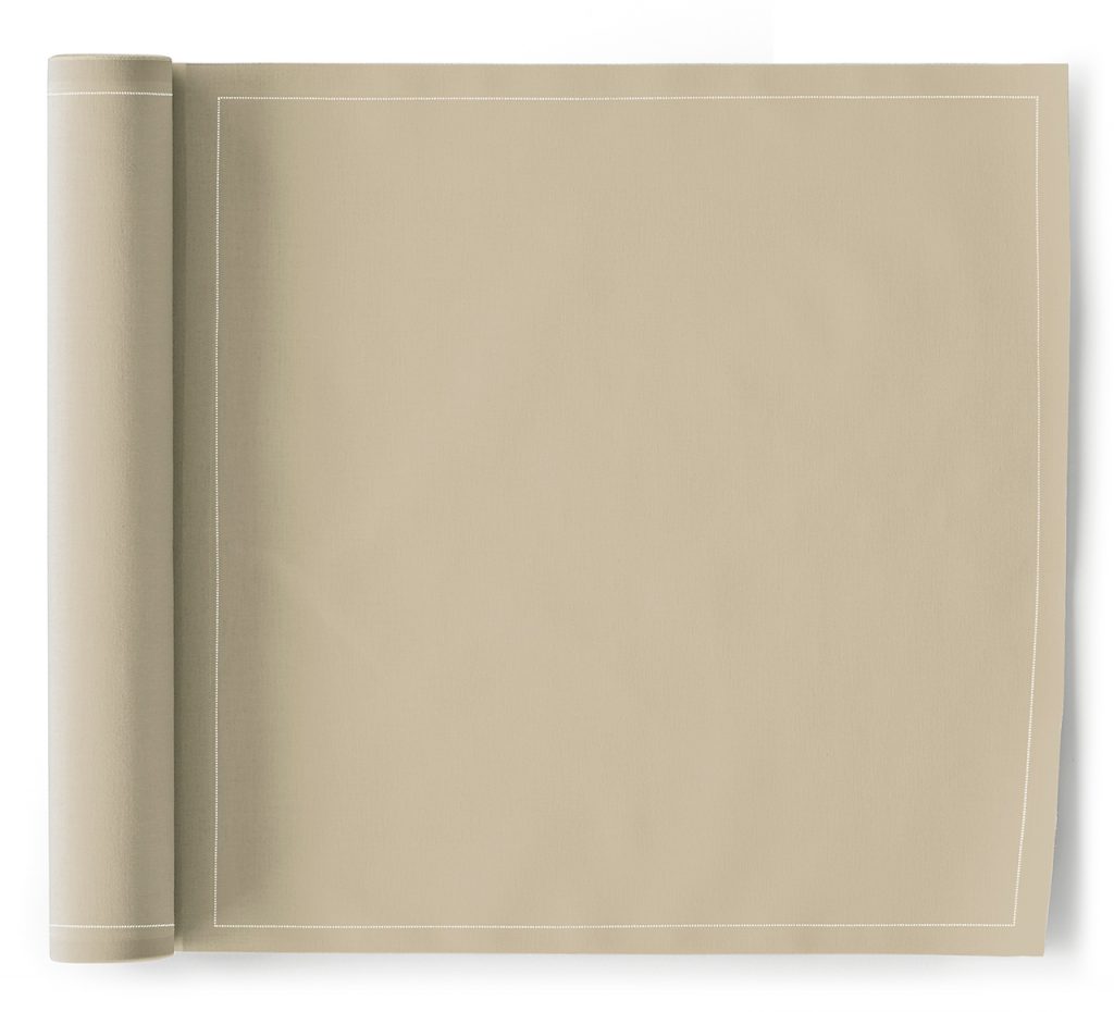 Table napkins 30×30 cm in sand and 100% cotton, presented in roll of 12 units. Perfect for accompanying all kinds of celebrations and formal meals. A colour that evokes nature, ideal for enjoying a relaxing meal in a cosy setting.