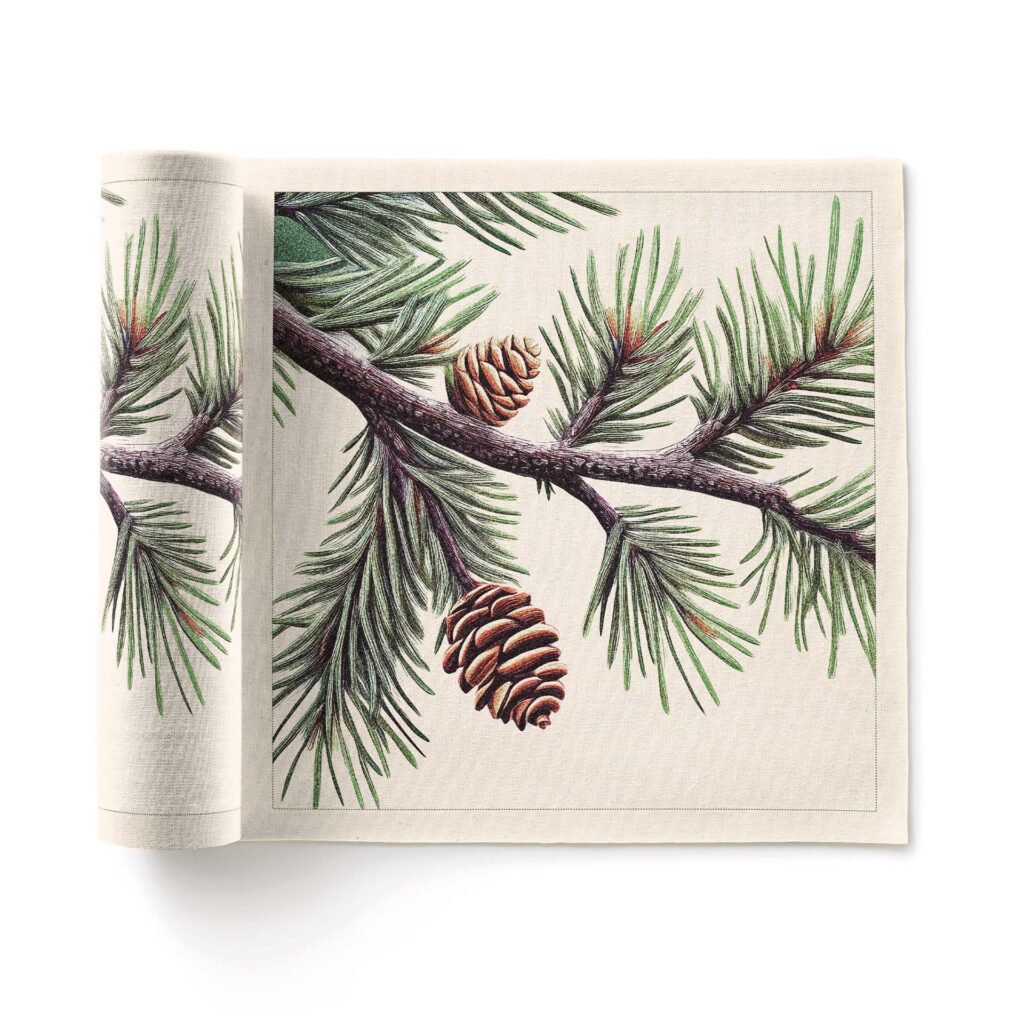 Rollo de 12 servilletas de tela de 20×20 cm y algodón reciclado de la colección Pine. Decora tu mesa en estas fechas especiales añadiendo el detalle que marca la diferencia con estas servilletas de alta calidad.